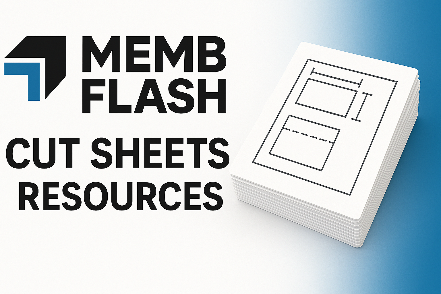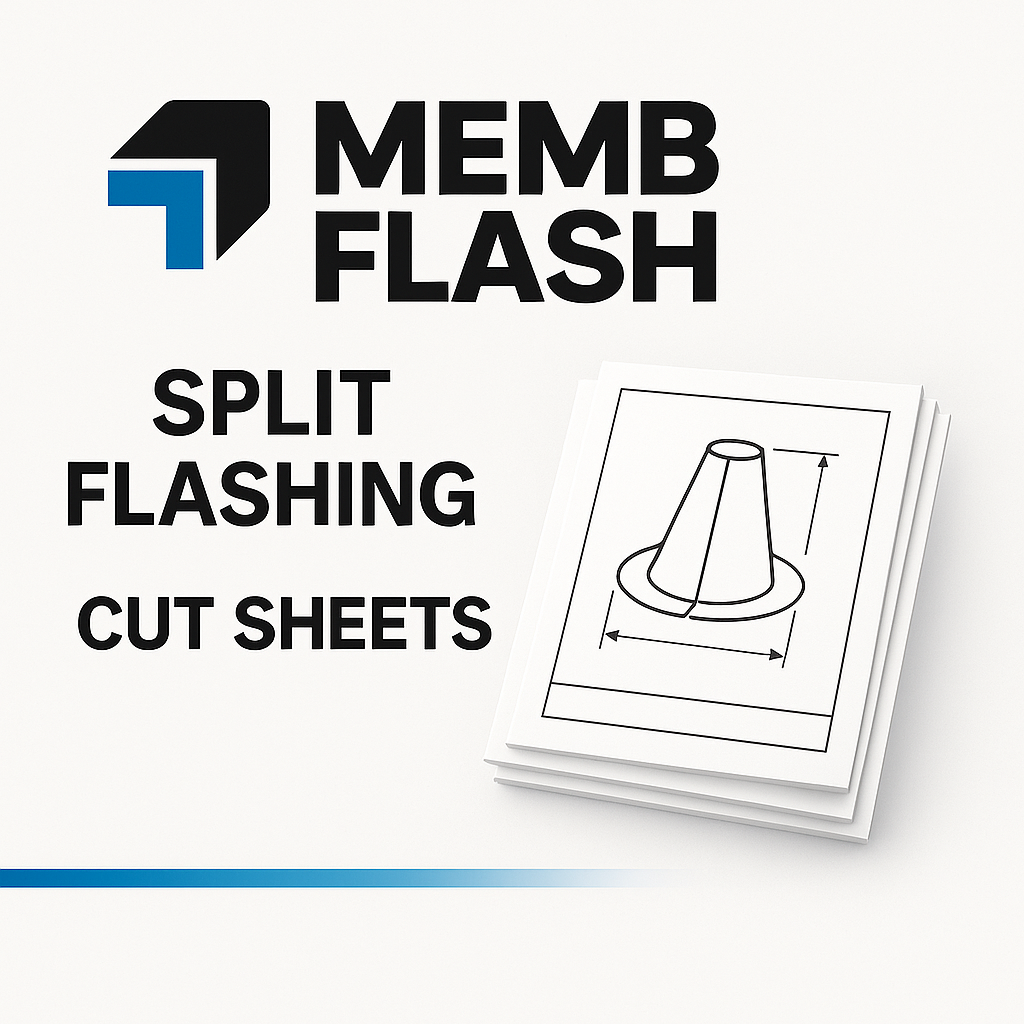 Our Cut Sheets provide clear product specifications, dimensions, and technical details for every MEMBFLASH® flashing type. These documents ensure accurate design integration, simplify submittals, and support both architects and contractors with precise, ready-to-use data.