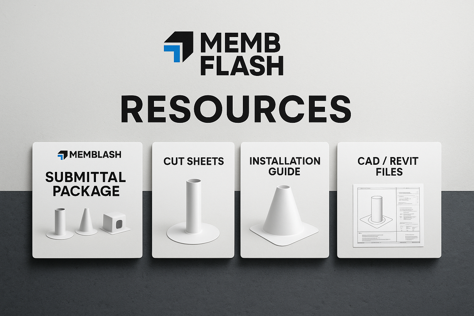 Find everything you need to work with MEMBFLASH products — from submittal packages and cut sheets to installation guides and CAD/Revit files. These resources are built to help contractors, architects, and specifiers save time and ensure every detail is done right.
